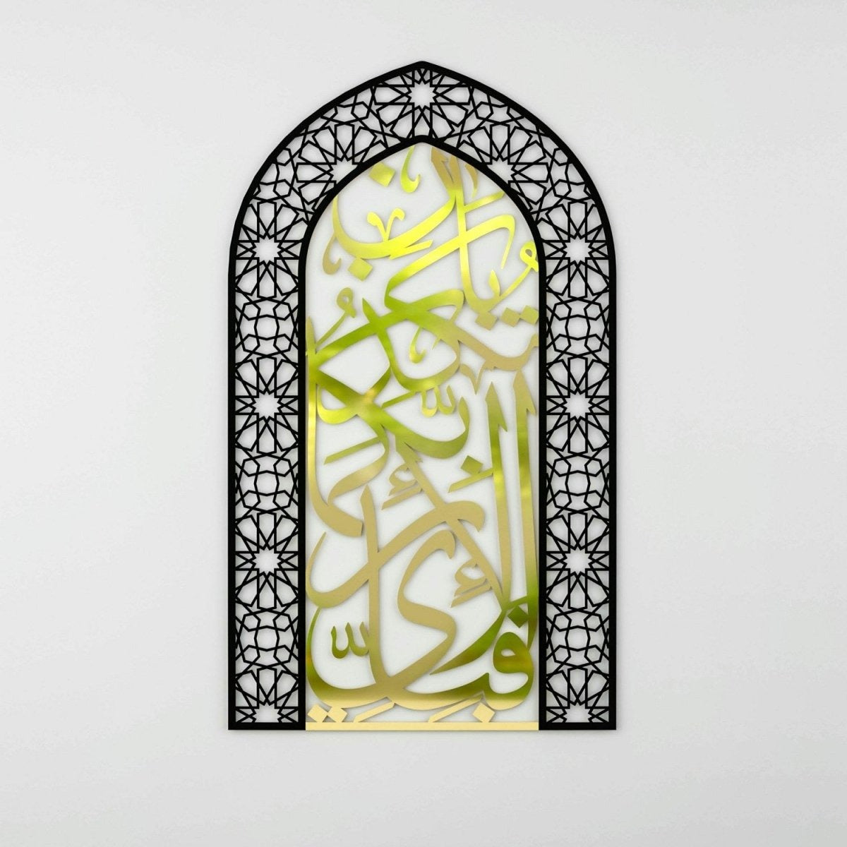 Metal Mihrab Surah Rahman Verse 13 - Dome Design for Home, Islamic Wall Art