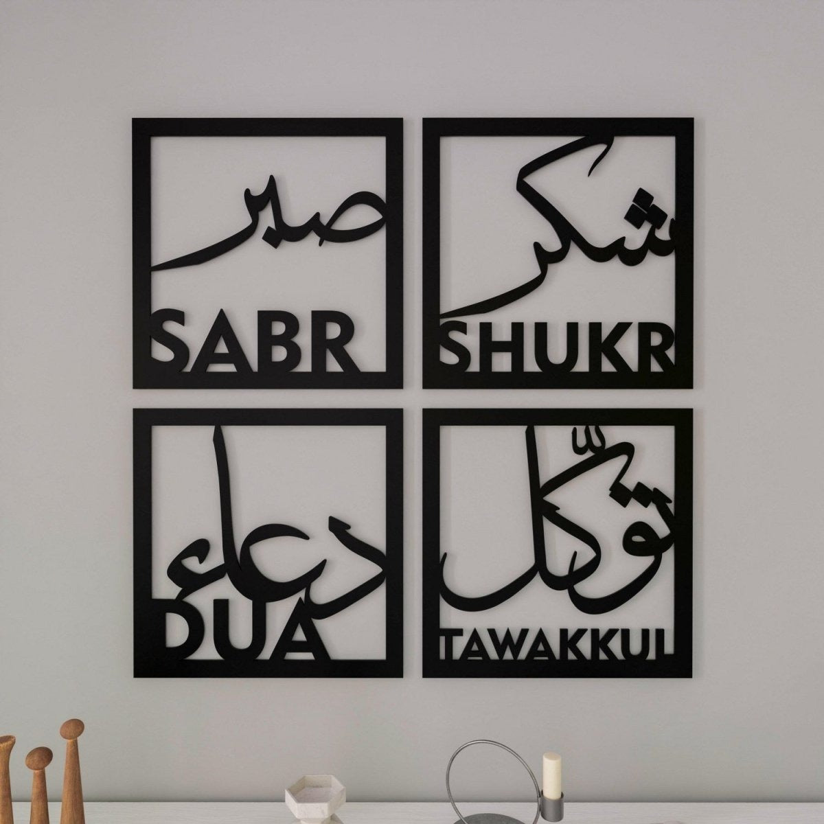 Sabr Shukr Tawakkul Dua Decor Set - Wooden/Acrylic Islamic Wall Art